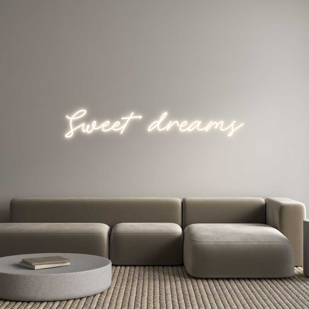 Text: Sweet dreams Text Align: left Font: RocketColour: Warm WhiteSize: 80cm wide / 80cm X 13.67cm / 31.5in X 5.38inBackboard: Cut to Letter (free upgrade)Jacket: Coloured JacketMounting: Wall mounting screwsAdd a Heart or Star (Optional): None (Default)Neon Tube Thickness: Cla...