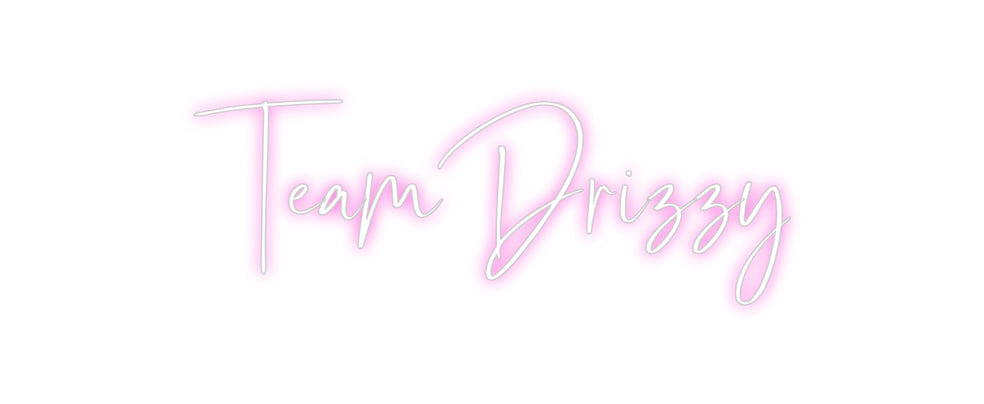 Text: Team Drizzy Text Align: left Font: OttawaColour: PinkSize: 100cm wide / 100cm X 35.02cm / 39.37in X 13.79inBackboard: Cut to ShapeBackboard Colour: Clear Acrylic BackboardJacket: Coloured JacketMounting: HangingAdd a Heart or Star (Optional): None (Default)Neon Tube Thickness: ...