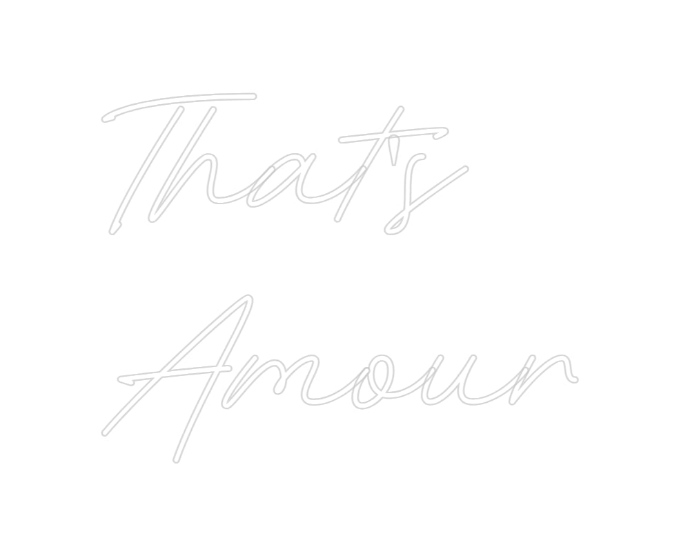 Text: That's Amour Text Align: left Font: RocketColour: WhiteSize: 40cm wide / 40cm X 30.36cm / 15.75in X 11.95inBackboard: Cut to ShapeBackboard Colour: Clear Acrylic BackboardJacket: Coloured JacketMounting: Wall mounting screwsAdd a Heart or Star (Optional): None (Default)Neon Tu...