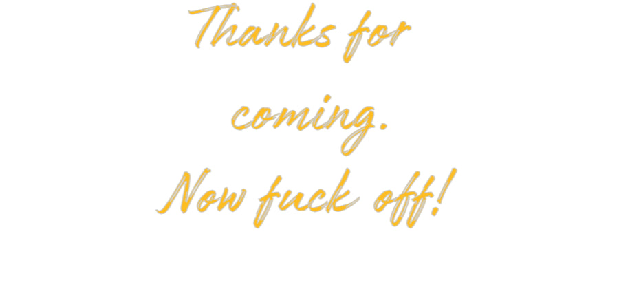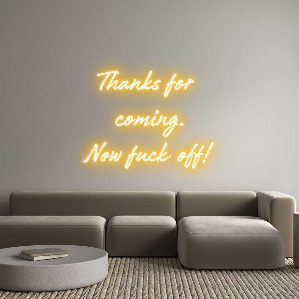 Text: Thanks for coming. Now fuck off! Text Align: centerFont: WorldColour: Light OrangeSize: 80cm wide / 80cm X 63.66cm / 31.5in X 25.06inBackboard: Cut to Letter (free upgrade)Jacket: Coloured JacketMounting: Wall mounting screwsAdd a Heart or Star (Optional): None (Default)Neon...