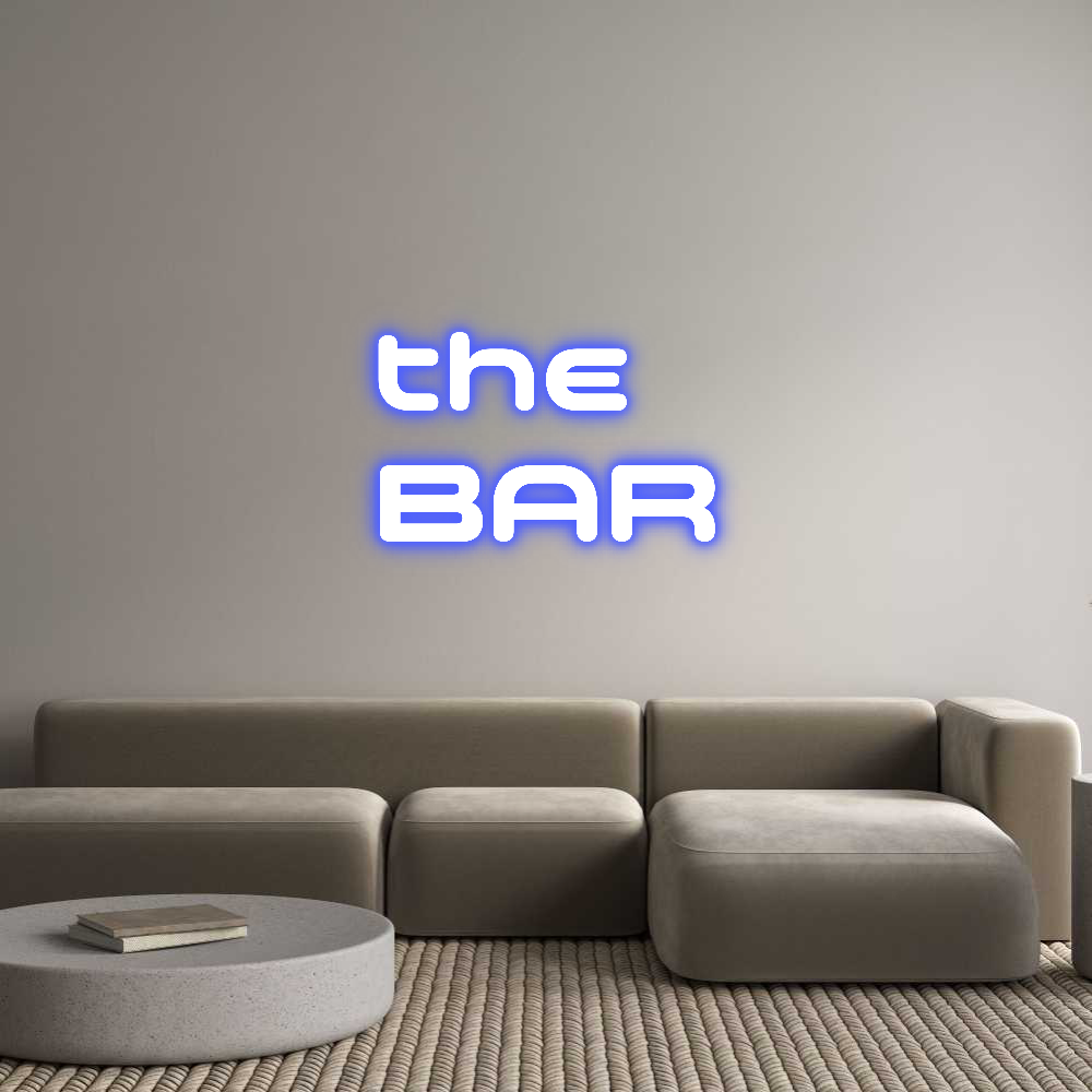 Text: the BAR Text Align: leftFont: SpaceColour: BlueSize: 120cm wide / 120cm X 67.8cm / 47.24in X 26.69inBackboard: Cut to Letter (free upgrade)Jacket: Coloured JacketMounting: Wall mounting screwsAdd a Heart or Star (Optional): None (Default)Neon Tube Thickness: Bold Tube (8mm) (f...