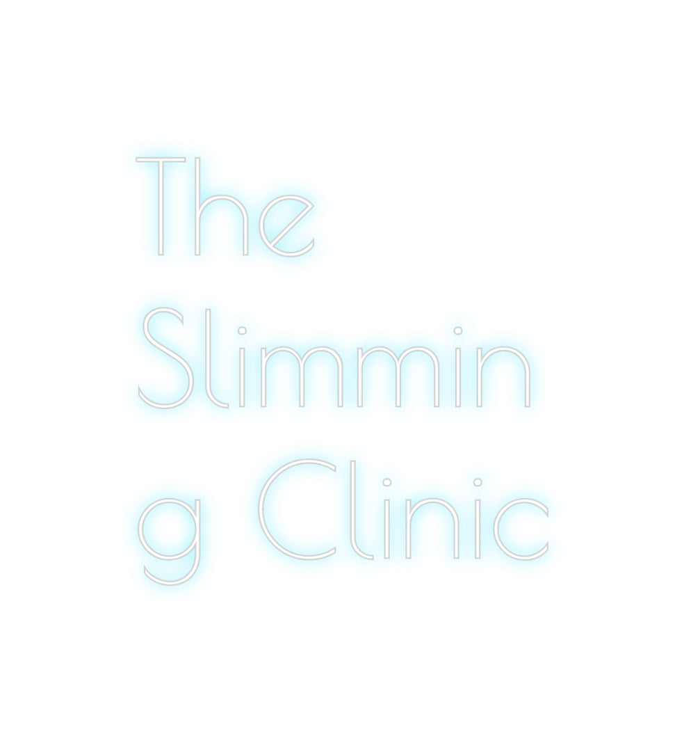 Text: The Slimmin g Clinic Text Align: left Font: PoiretColour: Ice BlueSize: 60cm wide / 60cm X 61.47cm / 23.62in X 24.2inBackboard: Cut to ShapeBackboard Colour: Clear Acrylic BackboardJacket: White JacketMounting: HangingAdd a Heart or Star (Optional): None (Default)Neon T...