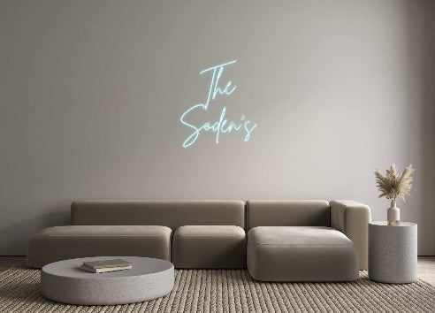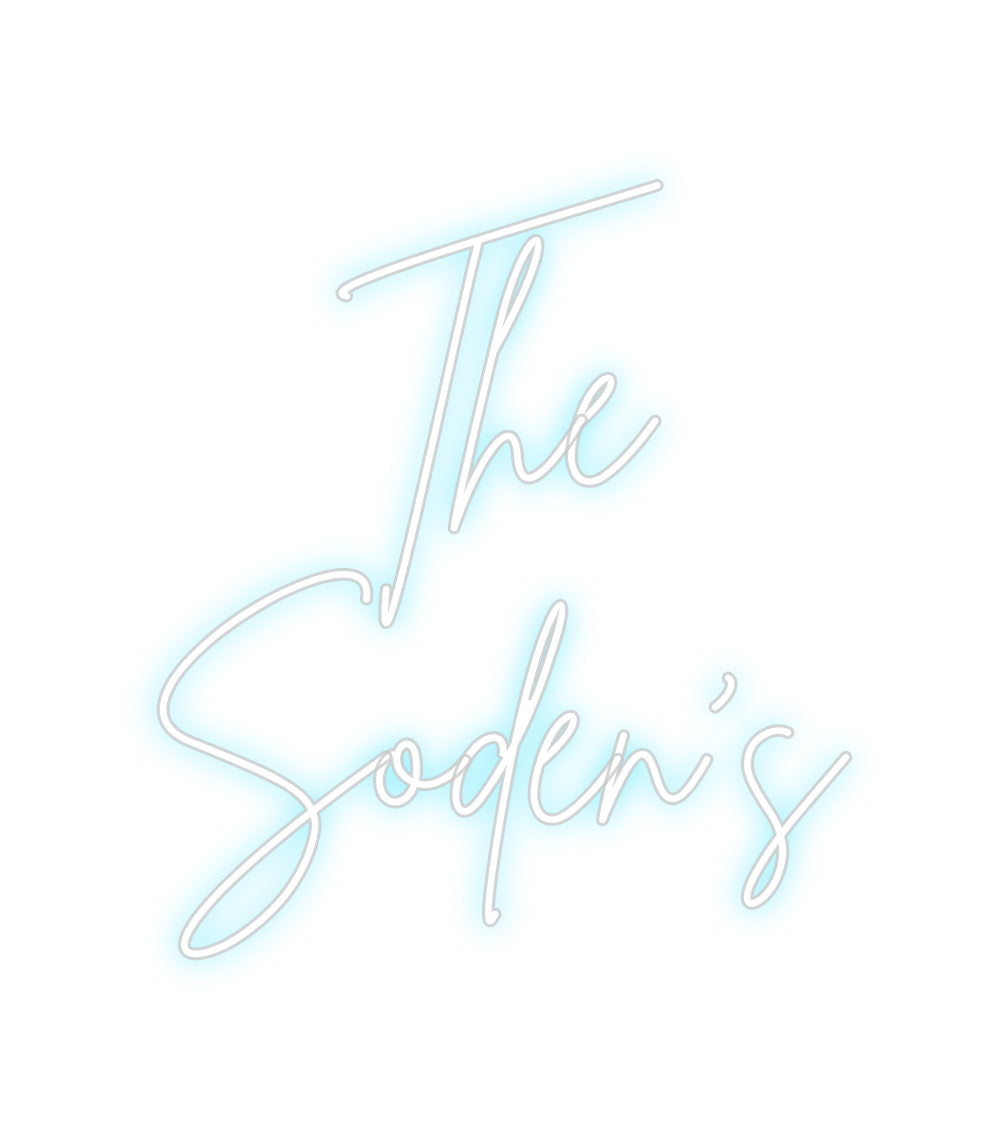 Text: The Soden’s Text Align: center Font: BrittanyColour: Ice BlueSize: 350cm wide / 350cm X 384.15cm / 137.8in X 151.24inBackboard: Cut to Letter (free upgrade)Jacket: Coloured JacketMounting: Wall mounting screwsAdd a Heart or Star (Optional): StarNeon Tube Thickness: Bold...