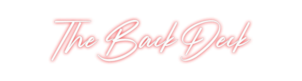 Text: The Back Deck Text Align: left Font: StrudeColour: Colour Changing Neon sign/ RGB +85% price increase. Lights can be controlled through remoteSize: 160cm wide / 160cm X 33.73cm / 62.99in X 13.28inBackboard: Cut to Letter (free upgrade)Jacket: White JacketMounting: Wall mo...