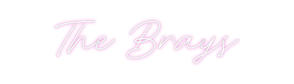 Text: The Brays Text Align: left Font: RocketColour: Baby PinkSize: 80cm wide / 80cm X 18.27cm / 31.5in X 7.19inBackboard: Cut to Letter (free upgrade)Jacket: Coloured JacketMounting: Wall mounting screwsAdd a Heart or Star (Optional): None (Default)Neon Tube Thickness: Classic Tube ...