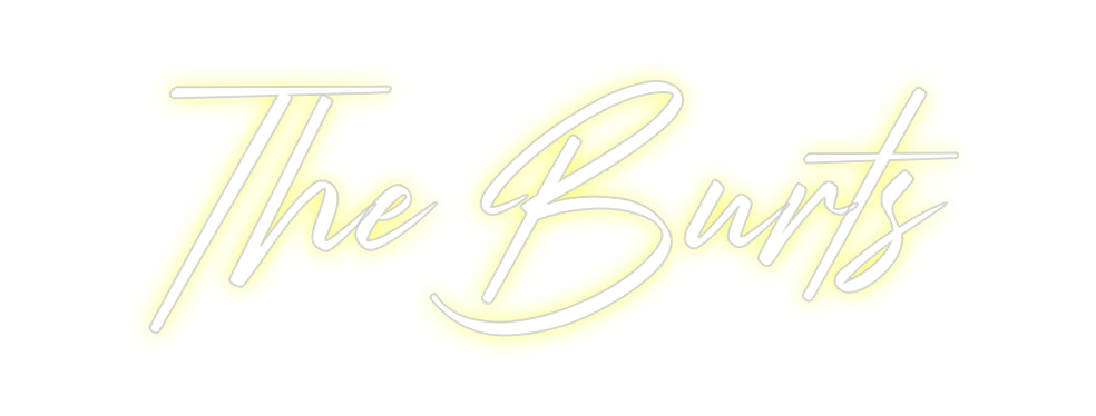 Text: The Burts Text Align: left Font: StrudeColour: YellowSize: 80cm wide / 80cm X 25.54cm / 31.5in X 10.06inBackboard: Cut to Letter (free upgrade)Jacket: Coloured JacketMounting: HangingAdd a Heart or Star (Optional): None (Default)Neon Tube Thickness: Classic Tube (6mm)Remote Dim...