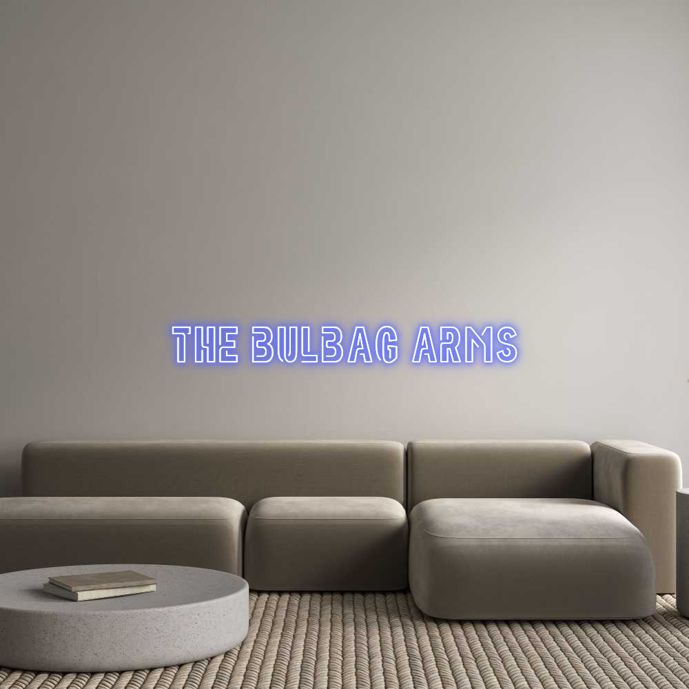 Text: The Bulbag Arms Text Align: LeftFont: NeonColor: BlueSize: 80cm wide / 80cm X 8.01cm / 31.5in X 3.15inMaterial: Outdoor (+30%) Backboard: Cut to ShapeBackboard Color: Clear Acrylic BackboardJacket: Coloured JacketMounting: HangingAdd a Heart or Star (Optional): None (Default)Neon Tube...