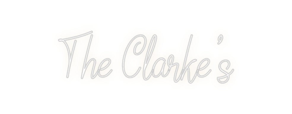Text: The Clarke's Text Align: left Font: LinoleoColour: Warm WhiteSize: 80cm wide / 80cm X 26.5cm / 31.5in X 10.43inBackboard: Cut to Letter (free upgrade)Jacket: White JacketMounting: HangingAdd a Heart or Star (Optional): None (Default)Neon Tube Thickness: Classic Tube (6mm)Remot...