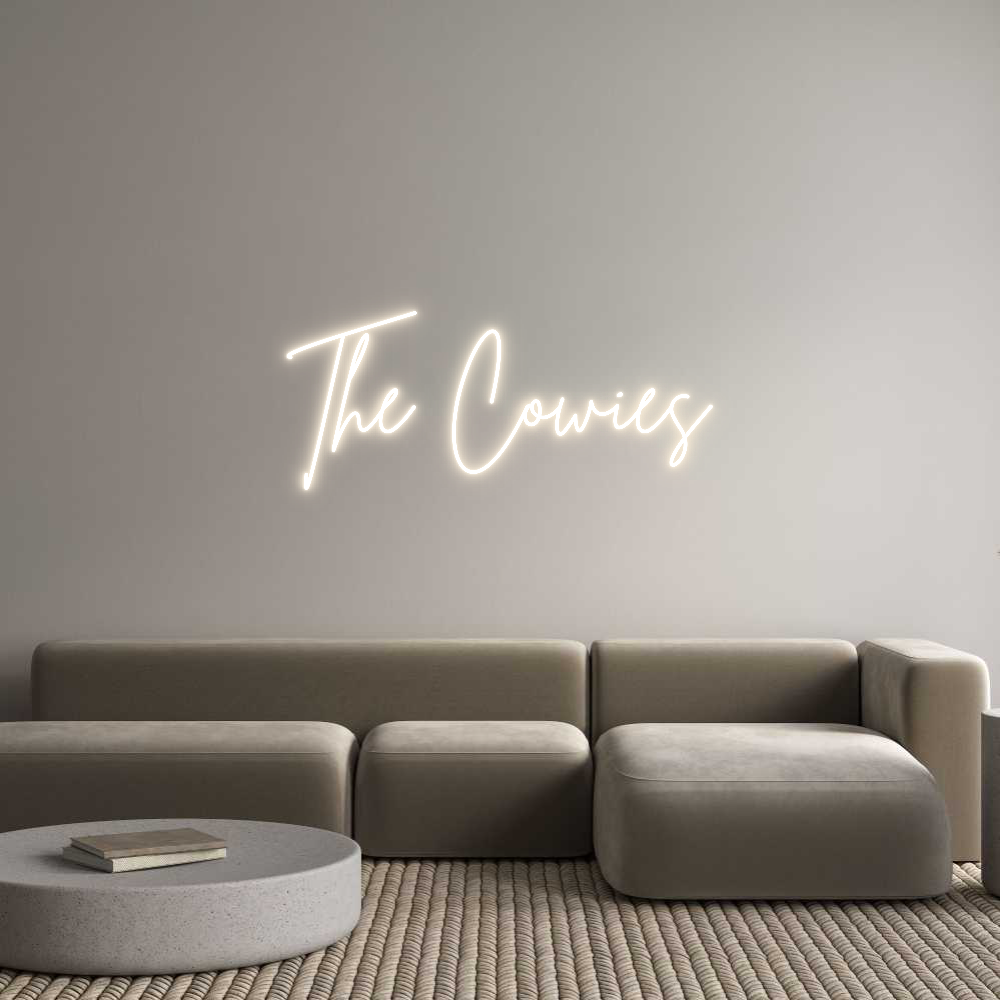 Text: The Cowies Text Align: leftFont: BrittanyColour: Warm WhiteSize: 60cm wide / 60cm X 25.84cm / 23.62in X 10.17inBackboard: Cut to ShapeBackboard Colour: Clear Acrylic BackboardJacket: Coloured JacketMounting: Wall mounting screwsAdd a Heart or Star (Optional): None (Default)Neon...