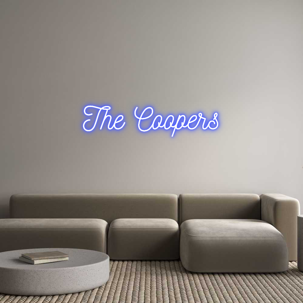 Text: The Coopers Text Align: LeftFont: NickainleyColor: BlueSize: 60cm wide / 60cm X 14.13cm / 23.62in X 5.56inBackboard: Cut to ShapeBackboard Color: Clear Acrylic BackboardJacket: White JacketMounting: Wall mounting screwsAdd a Heart or Star (Optional): None (Default)Neon Tube Thi...
