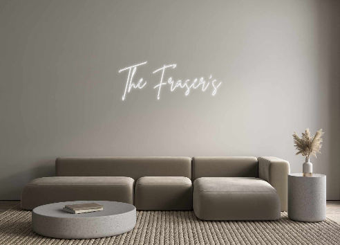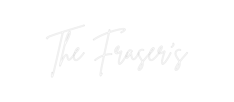 Text: The Fraser’s Text Align: right Font: BrittanyColour: WhiteSize: 80cm wide / 80cm X 30.25cm / 31.5in X 11.91inBackboard: Cut to Letter (free upgrade)Jacket: White JacketMounting: HangingNeon Tube Thickness: Classic Tube (6mm)Remote Dimmer: YesPower Mode: Power AdaptorSplas...