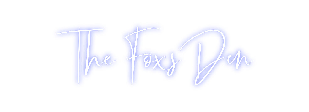 Text: The Fox’s Den Text Align: left Font: OttawaColour: BlueSize: 100cm wide / 100cm X 30.46cm / 39.37in X 11.99inBackboard: Cut to ShapeBackboard Colour: Clear Acrylic BackboardJacket: Coloured JacketMounting: HangingAdd a Heart or Star (Optional): None (Default)Neon Tube Thi...
