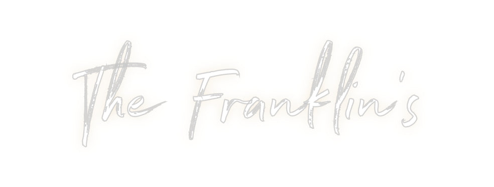 Text: The Franklin’s Text Align: left Font: NorthwellColour: Warm WhiteSize: 100cm wide / 100cm X 31.81cm / 39.37in X 12.52inBackboard: Cut to Letter (free upgrade)Jacket: Coloured JacketMounting: HangingAdd a Heart or Star (Optional): None (Default)Neon Tube Thickness: Bold T...