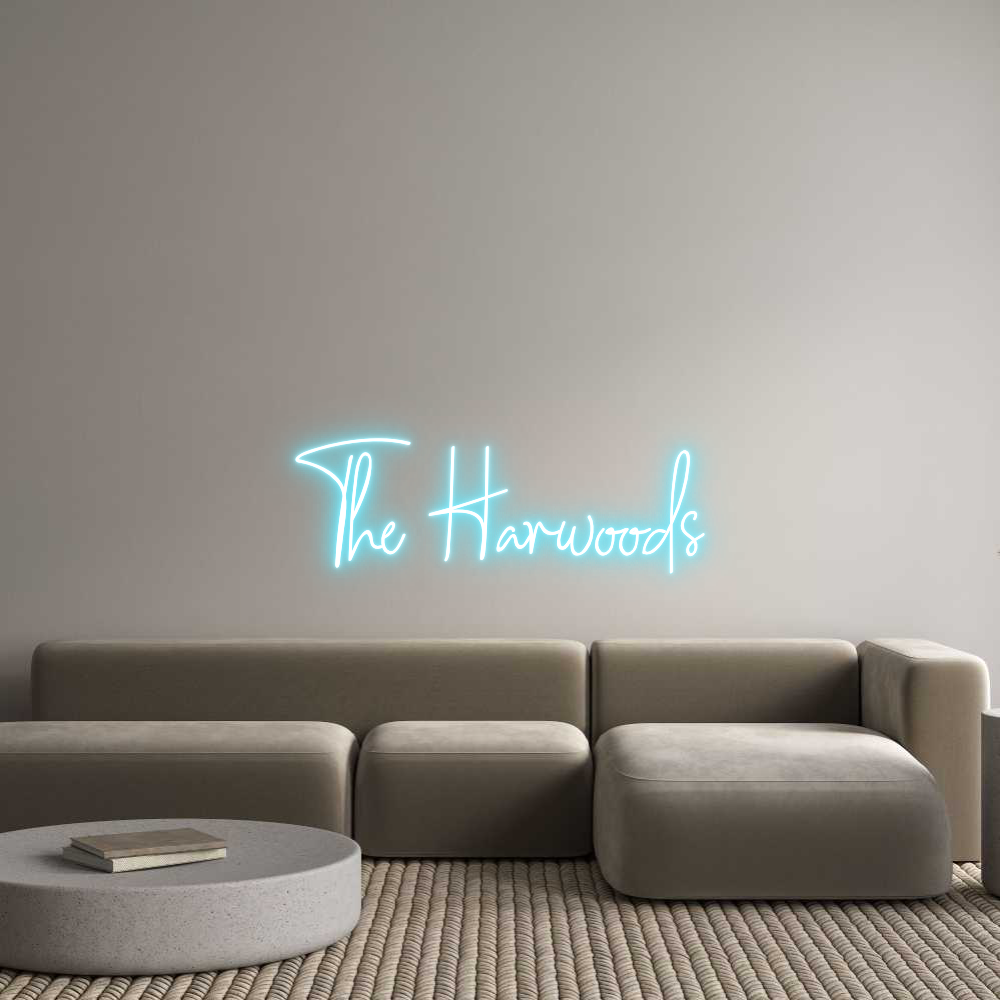 Text: The Harwoods Text Align: LeftFont: SouthamptonColor: Ice BlueSize: 80cm wide / 80cm X 27.46cm / 31.5in X 10.81inMaterial: IndoorBackboard: Cut to ShapeBackboard Color: Clear Acrylic BackboardJacket: Coloured JacketMounting: Fast mount kitAdd a Heart or Star (Optional): None (Default)N...
