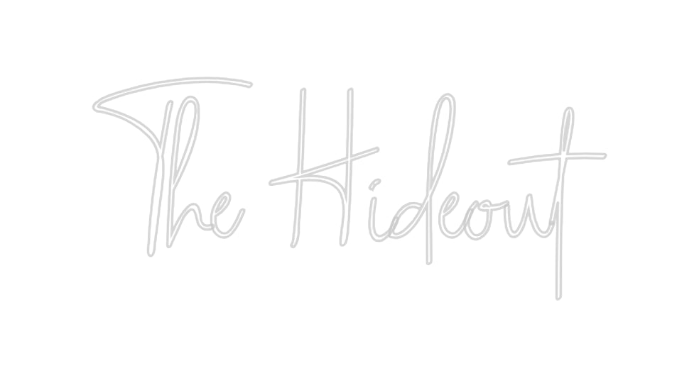 Text: The Hideout Line 1: The Font: Poiret Color: Warm White Hideout Font: Poiret Color: Warm White Text Align: Left Size: Custom 80.00 x 12.09 cm 31.50 x 4.76 in Material: Outdoor (+30%) Backboard: Cut to Shape Backboard Color: Clear Acrylic Backboard Jacket: Coloured Jacket Mounting:...