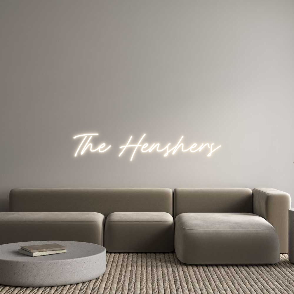 Text: The Henshers Text Align: LeftFont: RocketColor: Warm WhiteSize: 100cm wide / 100cm X 18.4cm / 39.37in X 7.25inMaterial: IndoorBackboard: Cut to ShapeBackboard Color: Clear Acrylic BackboardJacket: Coloured JacketMounting: HangingAdd a Heart or Star (Optional): None (Default)Neon Tube ...