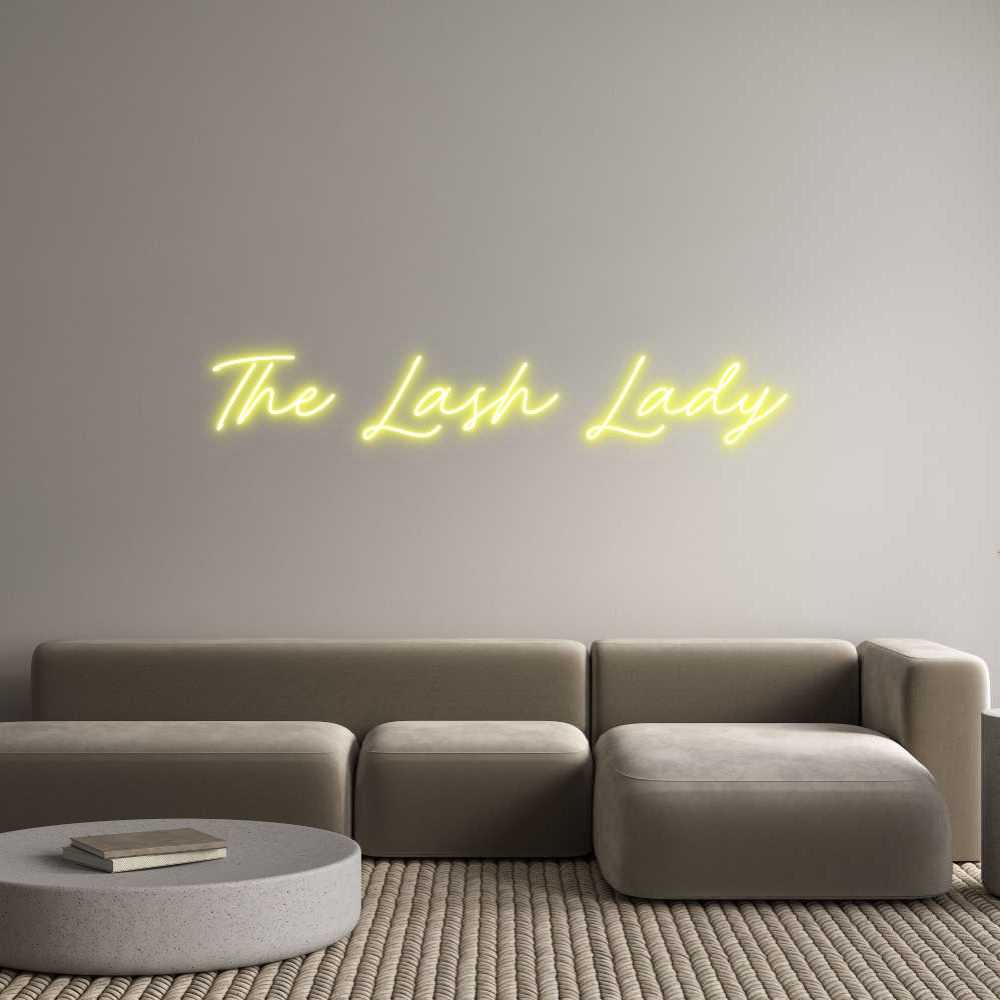Text: The Lash Lady Text Align: leftFont: RocketColour: YellowSize: 80cm wide / 80cm X 12.94cm / 31.5in X 5.1inBackboard: Cut to ShapeBackboard Colour: Clear Acrylic BackboardJacket: Coloured JacketMounting: Wall mounting screwsAdd a Heart or Star (Optional): None (Default)Neon Tube ...