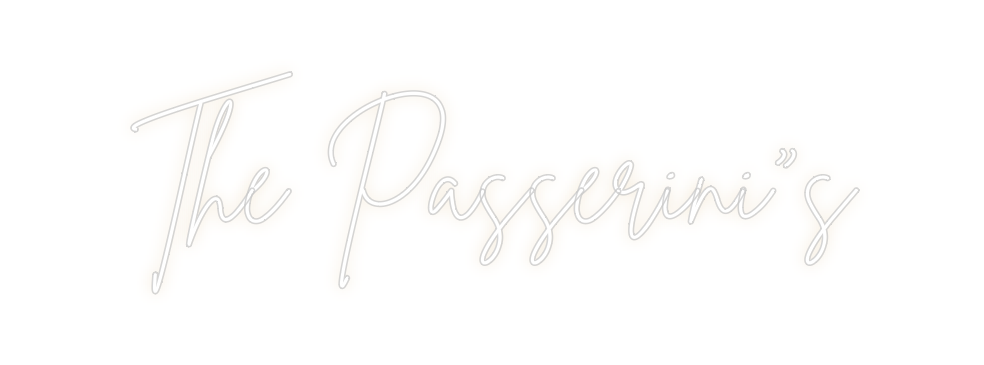 Text: The Passerini”s Text Align: center Font: BrittanyColour: Warm WhiteSize: 100cm wide / 100cm X 31.01cm / 39.37in X 12.21inBackboard: Cut to Letter (free upgrade)Jacket: Coloured JacketMounting: HangingAdd a Heart or Star (Optional): None (Default)Neon Tube Thickness: Bold ...