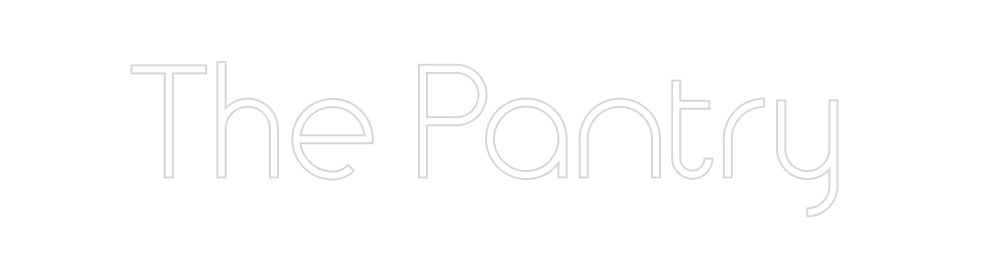 Text: The Pantry Text Align: left Font: TimeColour: WhiteSize: 60cm wide / 60cm X 13.3cm / 23.62in X 5.24inBackboard: Cut to ShapeBackboard Colour: Silver MirrorJacket: White JacketMounting: Wall mounting screwsAdd a Heart or Star (Optional): None (Default)Neon Tube Thickness: Bold T...