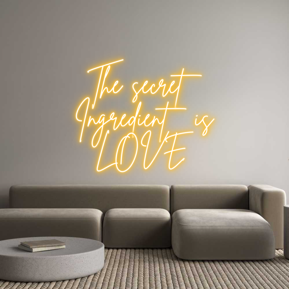 Text: The secret Ingredient is LOVE Text Align: CenterFont: BrittanyColor: Light OrangeSize: 80cm wide / 80cm X 80.44cm / 31.5in X 31.67inMaterial: IndoorBackboard: Cut to Letter (free upgrade)Jacket: Coloured JacketMounting: Wall mounting screwsAdd a Heart or Star (Optional): HeartNeon T...