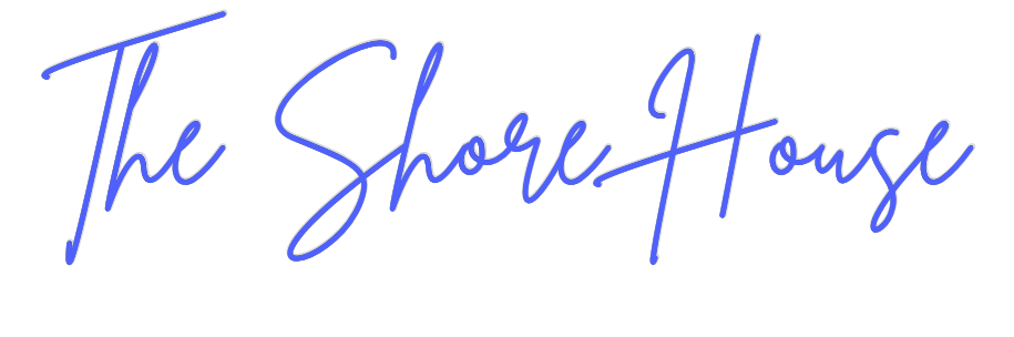 Text: The Shore House Text Align: LeftFont: BrittanyColor: BlueSize: 140cm wide / 140cm X 38.61cm / 55.12in X 15.2inMaterial: Outdoor (+30%) Backboard: Cut to Letter (free upgrade)Jacket: Coloured JacketMounting: HangingAdd a Heart or Star (Optional): None (Default)Neon Tube Thickness: Bold...