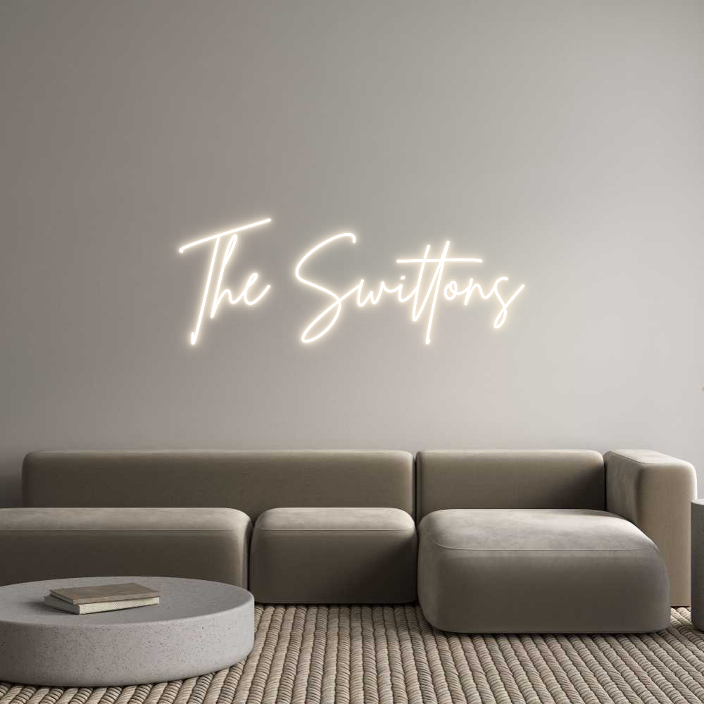 Text: The Swittons Text Align: centerFont: BrittanyColour: Warm WhiteSize: 80cm wide / 80cm X 29.97cm / 31.5in X 11.8inBackboard: Cut to ShapeBackboard Colour: Clear Acrylic BackboardJacket: White JacketMounting: HangingAdd a Heart or Star (Optional): None (Default)Neon Tube Thicknes...